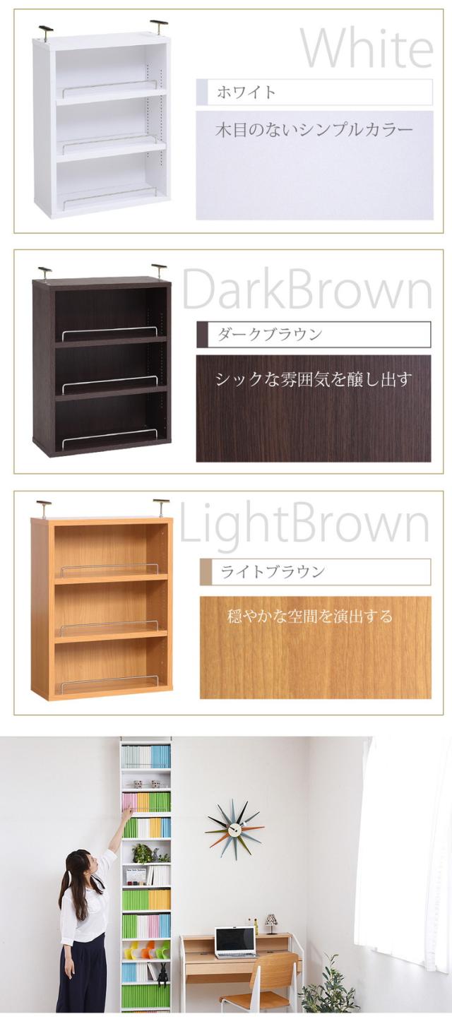 1cm単位、1cmピッチ、棚が調節出来る、薄型、オープンラック、本棚、書棚、突っ張り、つっぱり、オープンシェルフ、オープン棚、壁面収納本棚、つっぱり棚、突っ張り棚、つっぱり、壁面ラック、文庫本、cd、dvd、漫画、コミック、収納、ブラウン、突っ張りラック、つっぱりラック、白、1cmピッチラック