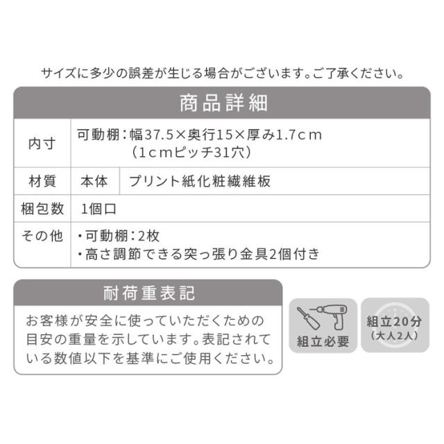 (可動棚)幅37.5×奥行15×厚み1.7cm(1cmピッチ31穴)