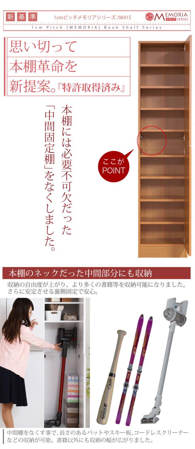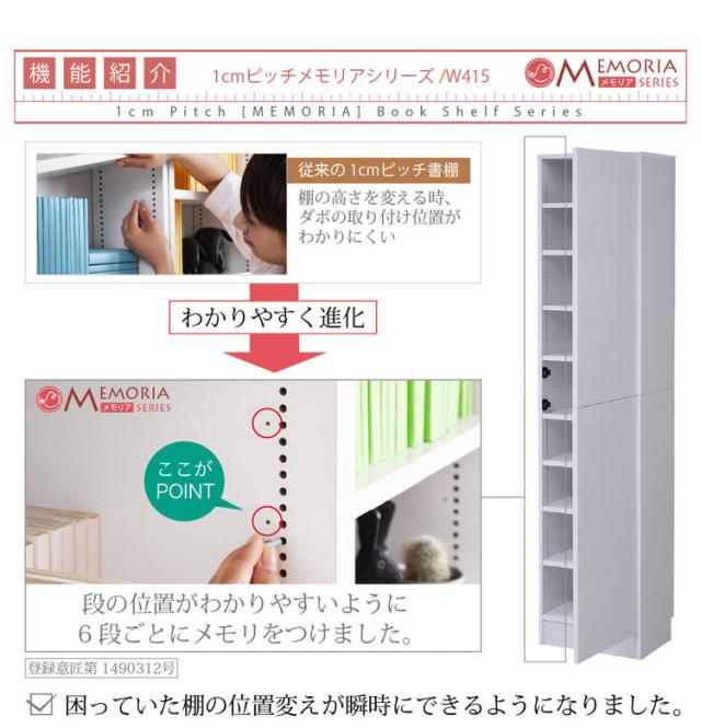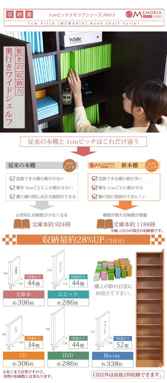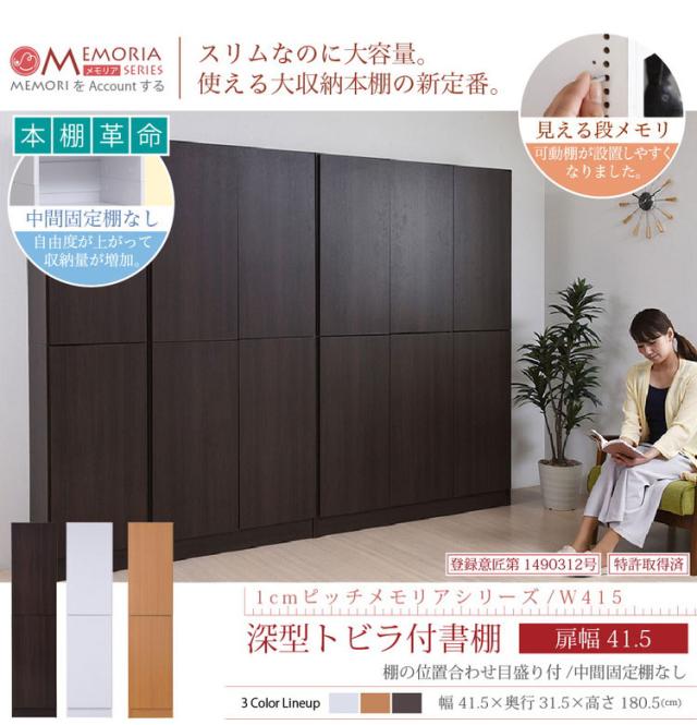 MEMORIA 本棚 深型 扉付き書棚 幅41.5 棚板が1cmピッチで調整できる メモリアシリーズ まるで図書館 スリム 大容量 文庫本 コミック(代引不可)【送料無料】