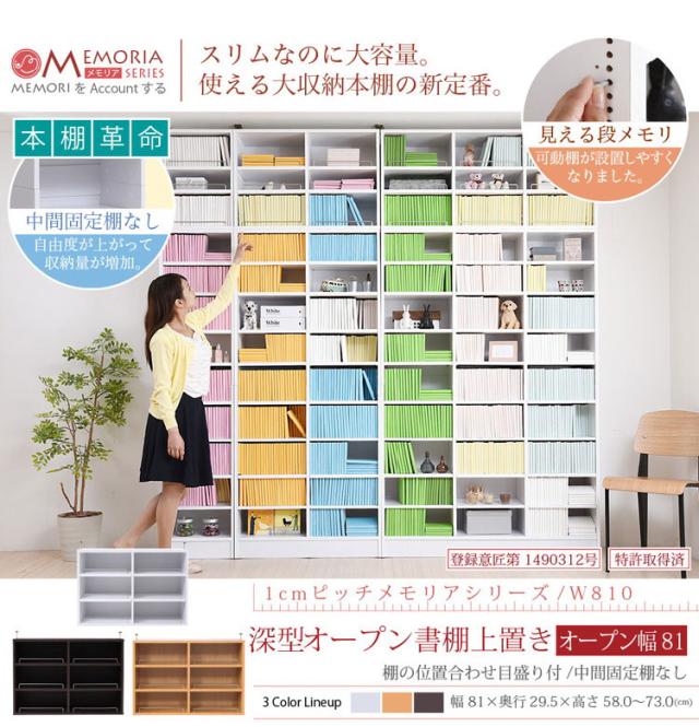MEMORIA 本棚 深型 オープン上置き単品 幅81 棚板が1cmピッチで調整できる メモリアシリーズ まるで図書館 スリム 大容量 文庫本 コミック(代引不可)【送料無料】