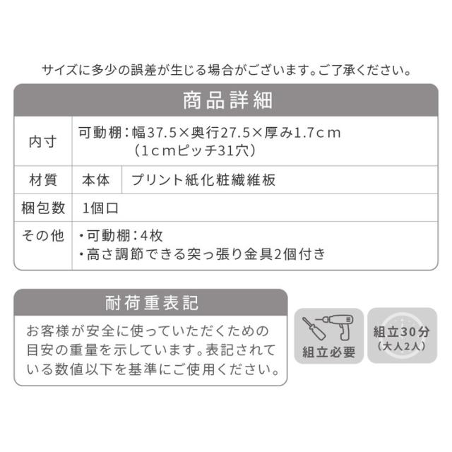 (可動棚)幅37.5×奥行27.5×厚み1.7cm(1cmピッチ31穴)