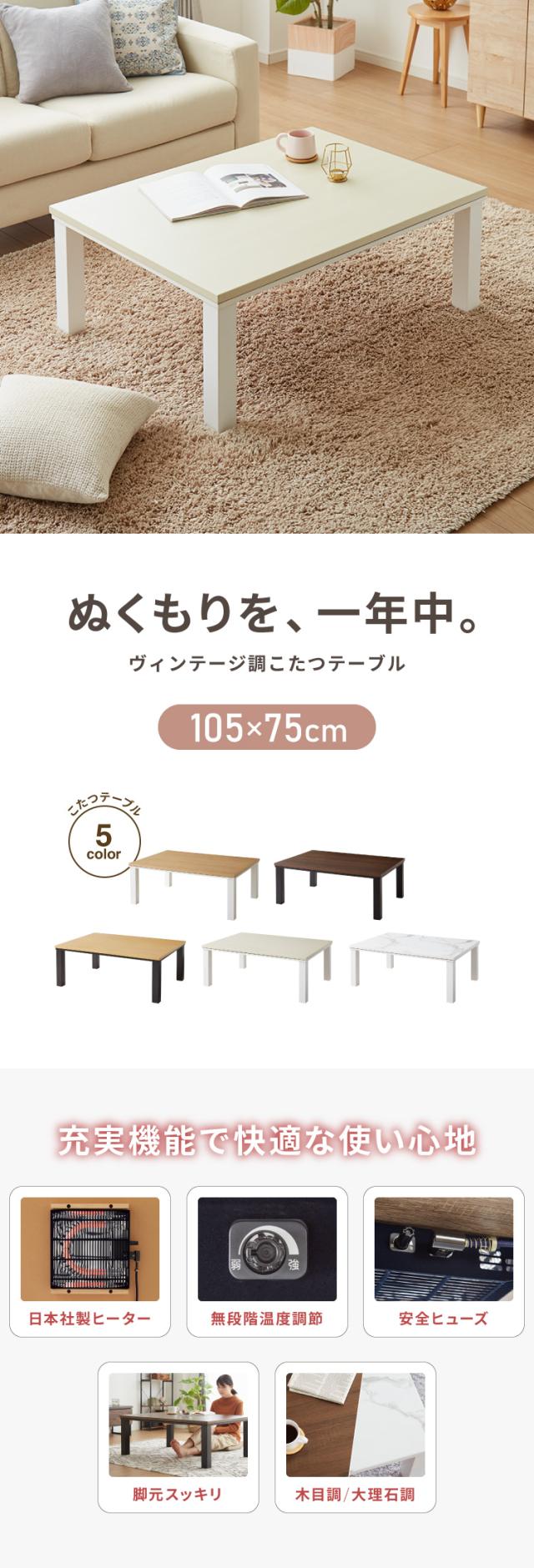 ヴィンテージこたつ 105×75cm テーブル単品 こたつテーブル 炬燵 家具調こたつ 年中使える 長方形 こたつ テーブル ヴィンテージ こたつ ローテーブル センターテーブル(代引不可)【送料無料】