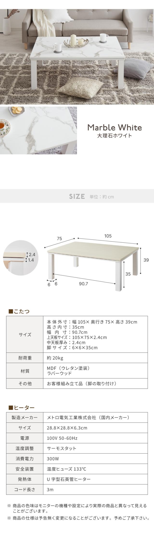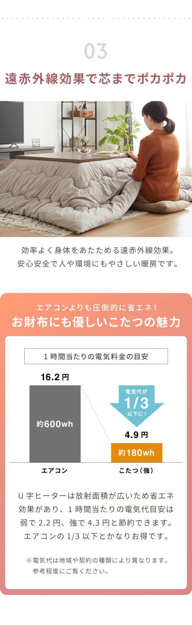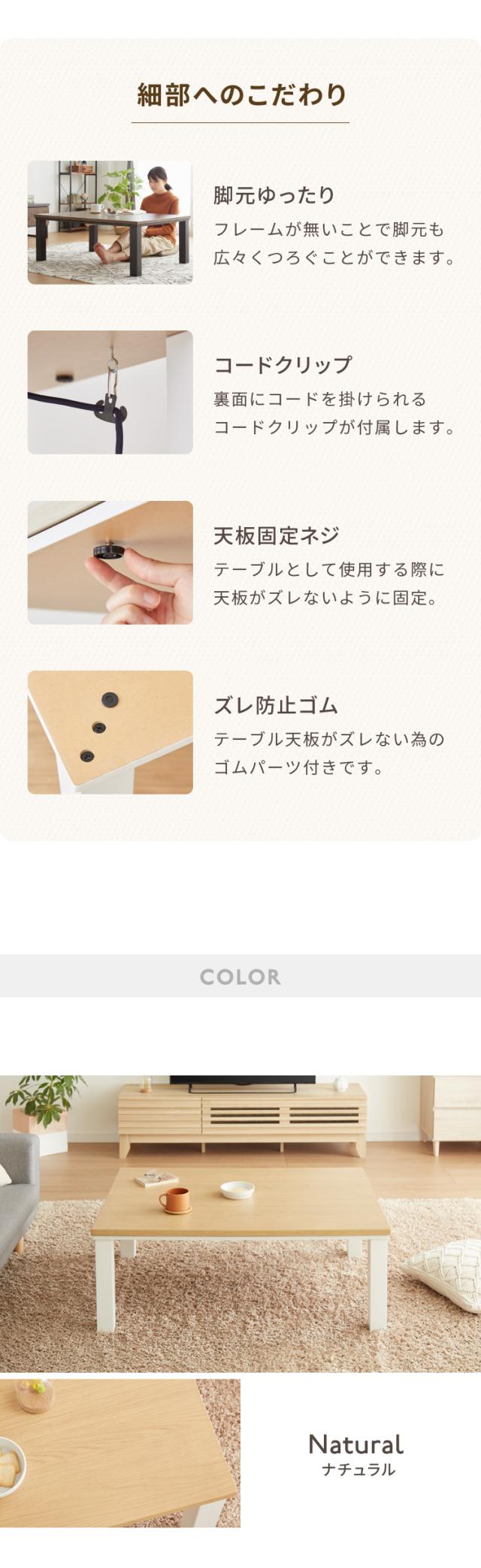 こたつテーブル単品 継ぎ脚式 105×75cm