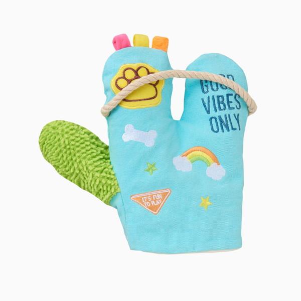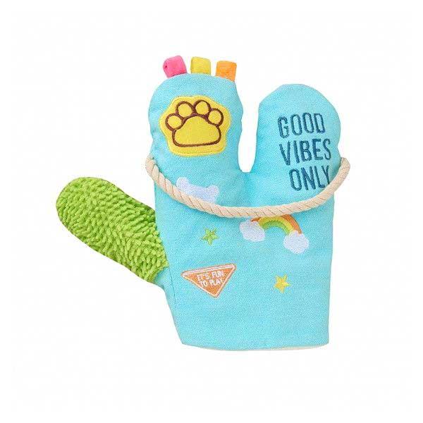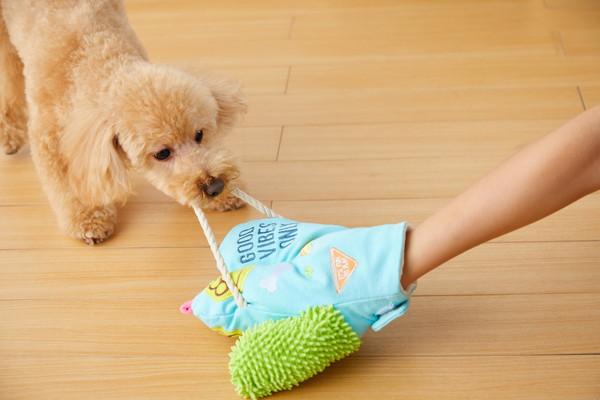 丈夫なキャンバス生地でワンちゃんとのスキンシップを楽しむ知育グローブTOY。