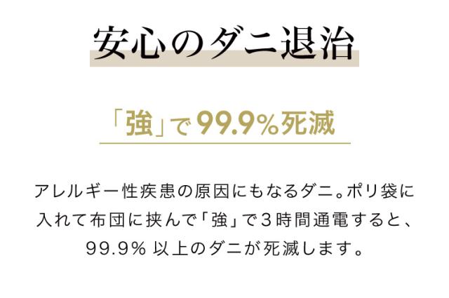 スライド調節、本体丸洗い、ダニ退治、電子式制御、室温センサー