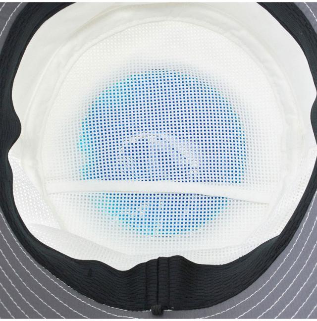 ツバと頭頂部は撥水も兼ねているラディクール生地で、頭囲周りはは通気性のあるメッシュ生地を使用。