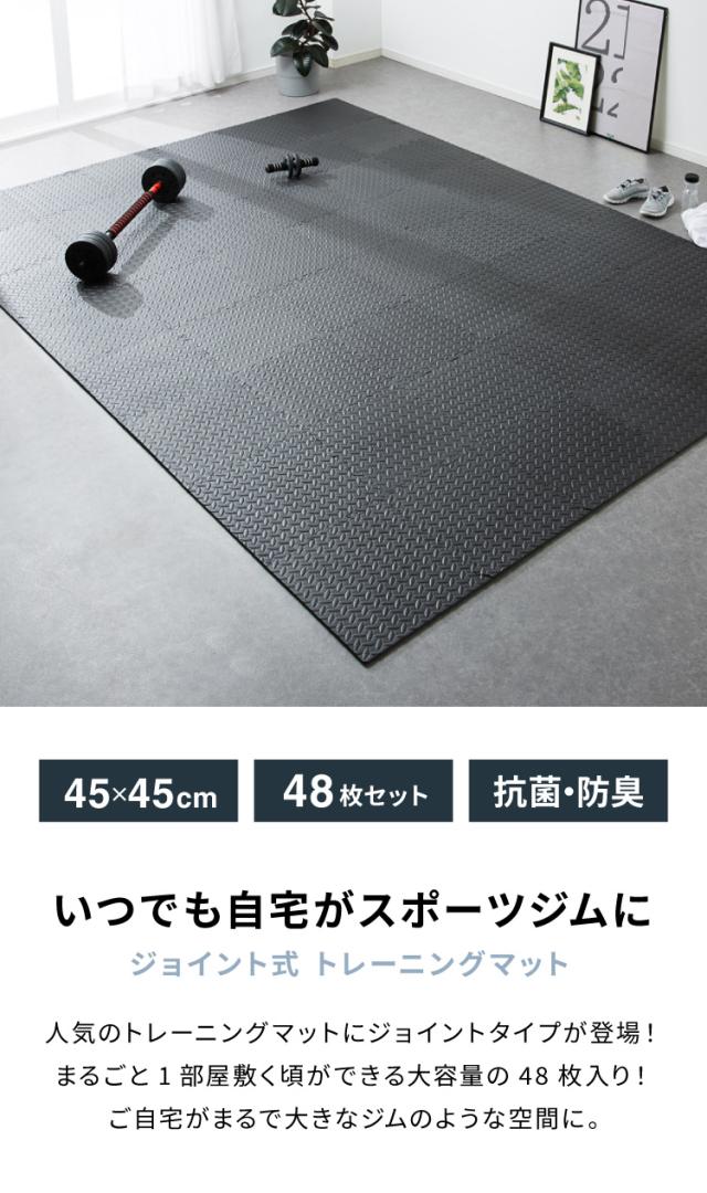 トレーニングマット 大判 滑り止め 抗菌 防臭 45cm ジョイント式 48枚セット 厚さ1cm フリーカット 床暖房対応ブラック ジョイントマット【送料無料】