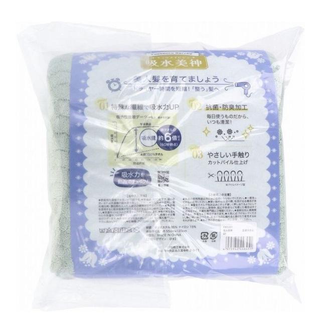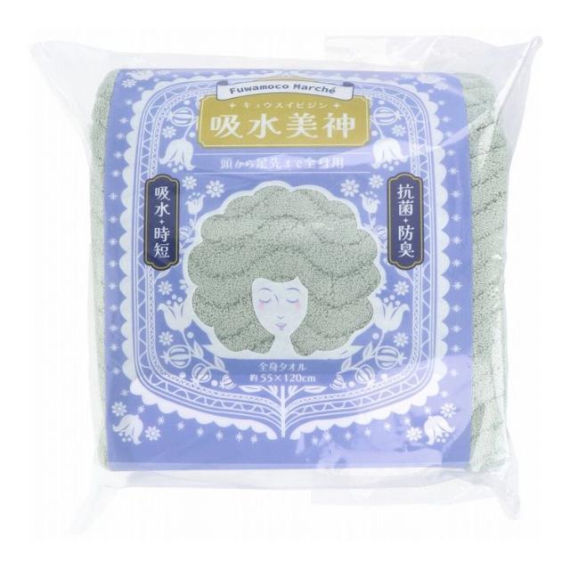 フワモコマルシェ 吸水美神 キュウスイビジン 全身タオル 約55×120cm グリーン 1枚入 日用品