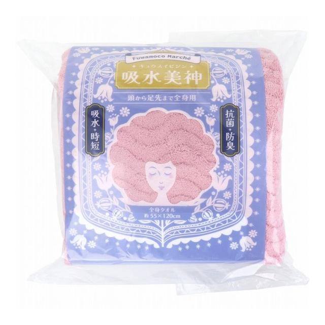 フワモコマルシェ 吸水美神 キュウスイビジン 全身タオル 約55×120cm ピンク 1枚入 日用品