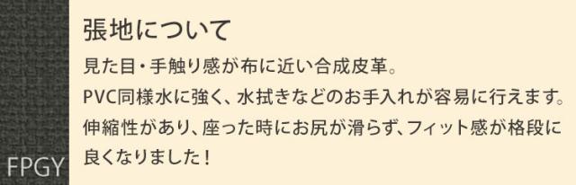 座面張り込みの合成皮革は、見た目・手触り感が布に近いFP張地。