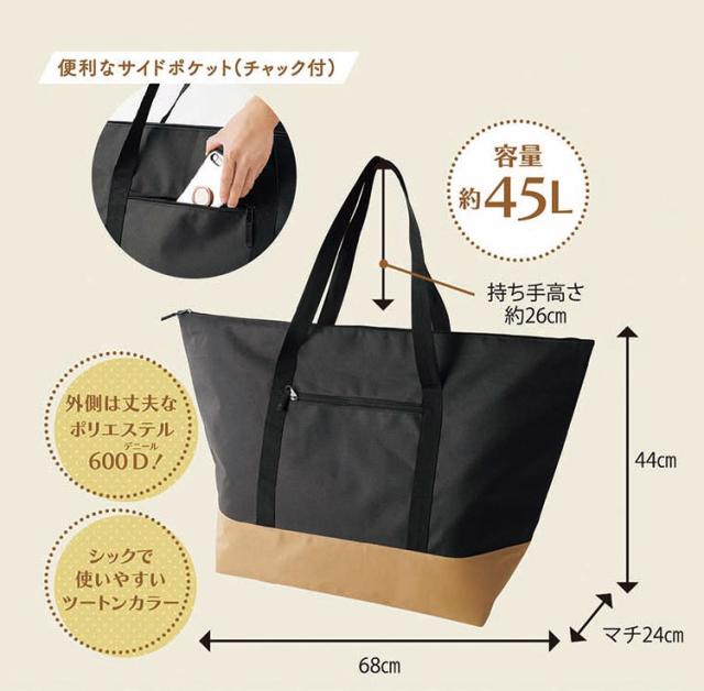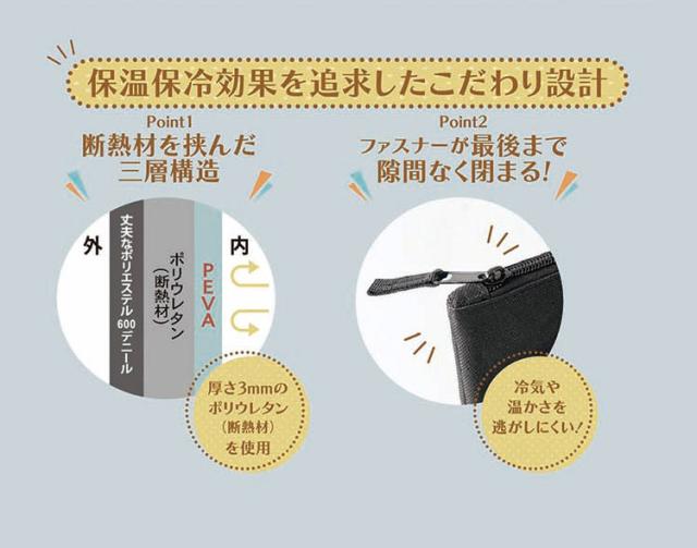 内側PEVA仕様で汚れや結露がサッと拭けて衛生的に気持ちよく使える。PEVAとは…シャワーカーテンやレインコートにも使用されるビニール素材の一種であり、塩化ビニール(PVR)よりも環境に優しい素材です。大容量!かさばる荷物もひとまとめ!ファスナーは最後までしっかり閉まって冷気を逃がしづらい!三層構造で確かな保冷効果と使いやすさを実現。