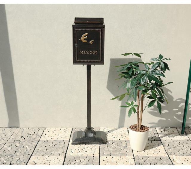 鋳物 スタンドポスト鳥 小鳥 郵便ポスト 郵便受け 新聞受け メールボックス ポスト 玄関 工事不要 アンティーク 投函可能 おしゃれ 北欧 ヴィンテージ レトロ シンプル かわいい(代引不可)【送料無料】
