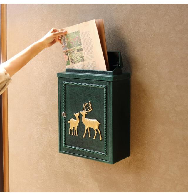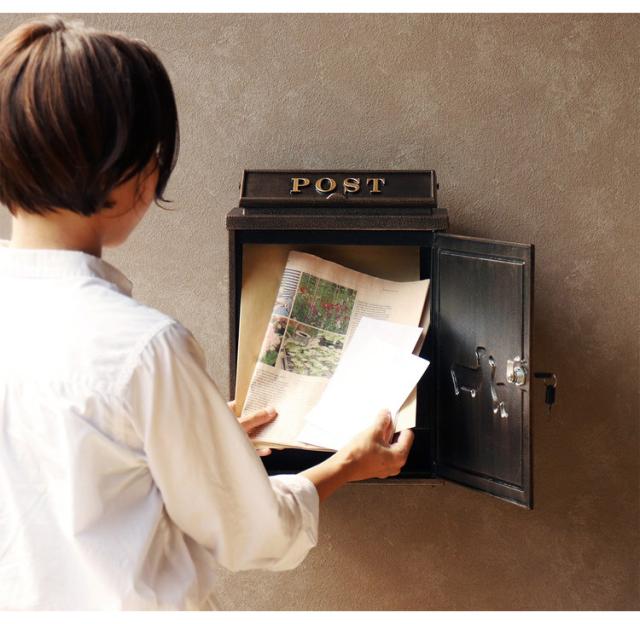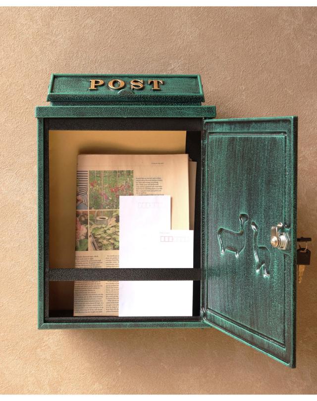 壁掛けポスト 鋳物製 鹿 郵便ポスト アンティーク風 鋳物 A4サイズ レターパック 大きめ 大容量 横開き扉 鋳造加工 ブロンズ グリーン ブラウン 郵便受け ヴィンテージ シンプル レトロ おしゃれ(代引不可)【送料無料】