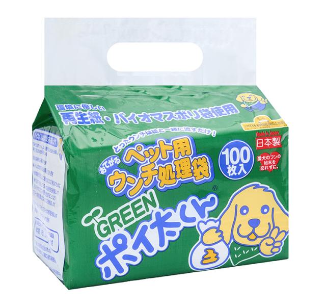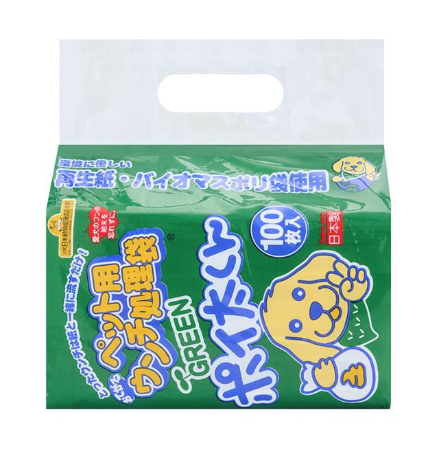 ペット用 うんち袋 GREEN ポイ太くん 100枚 トイレに流せる ウンチ袋 散歩袋 マナー袋 うんち処理袋 おさんぽ袋 流せる 大容量 犬用 犬 ぽいたくん
