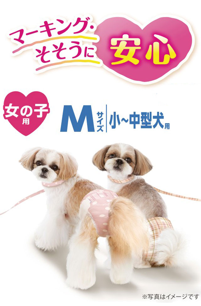そそう・生理に安心。お出かけ先でもおうちでも!「やわらかスリムフィット形状」で、やさしくフィットして動きやすく嫌がらない。「ぴったりサイドギャザー」で、足回りにフィットし、すきまモレを防ぐ。「安心スリム吸収体」で、6時間分のおしっこを吸収※健康なワンちゃんの6時間の平均おしっこ量を参考(ワンちゃんのおしっこ量には個体差があります)