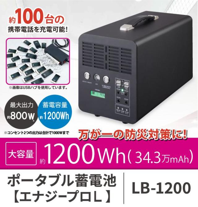 LB-1200 ポータブル蓄電池 エナジープロL ソーラー 太陽光 災害グッズ スマホ スマートフォン 対応 蓄電池 充電池(代引不可)【送料無料】