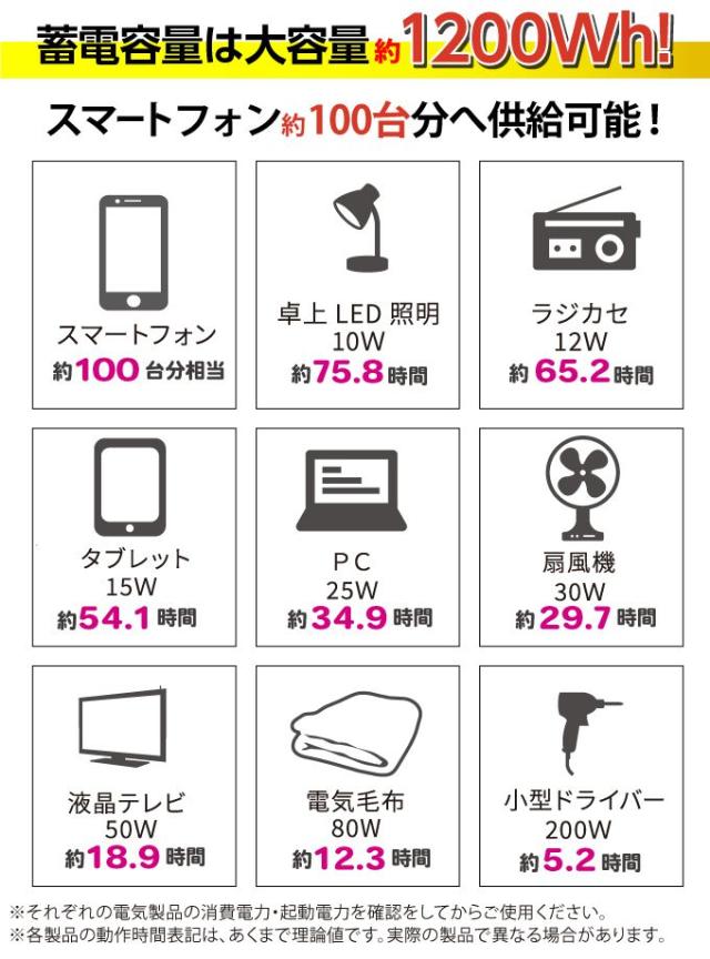 ・蓄電容量は約1200Wh