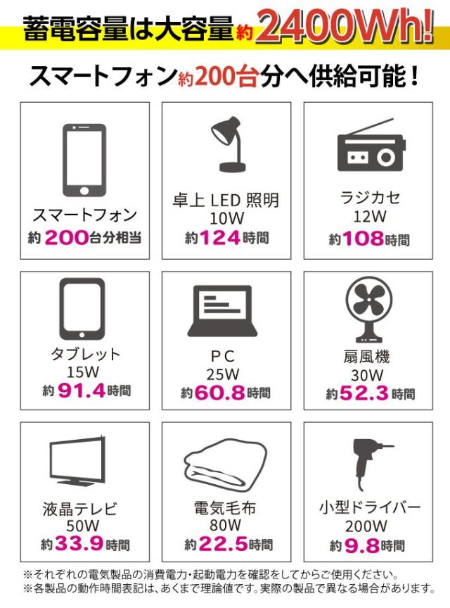 ・蓄電容量は約2400Wh