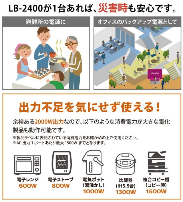 LB-2400 ポータブル蓄電池 エナジープロNeo ソーラー 太陽光 災害グッズ スマホ スマートフォン 対応 蓄電池 充電池(代引不可)【送料無料】