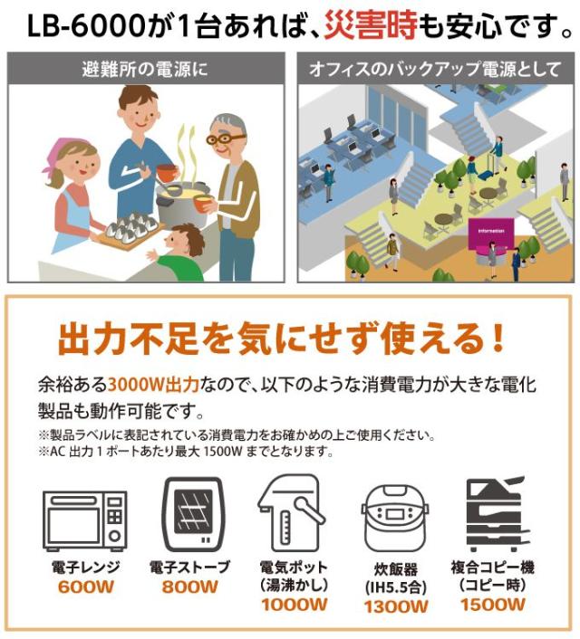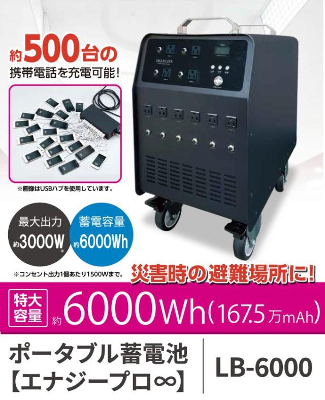 LB-6000 ポータブル蓄電池 エナジープロ∞ ソーラー 太陽光 災害グッズ スマホ スマートフォン 対応 蓄電池 充電池(代引不可)【送料無料】