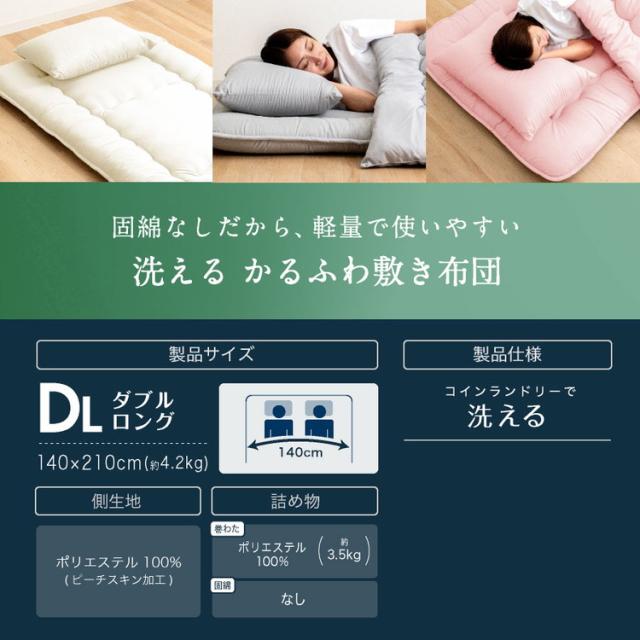 かるふわ 洗える 敷布団 ダブルロング 日本製 合繊 敷き布団(固綿無し) ダブル ロング 国産 日本製 敷き布団 洗える 丸洗い可 工場直送(代引不可)【送料無料】