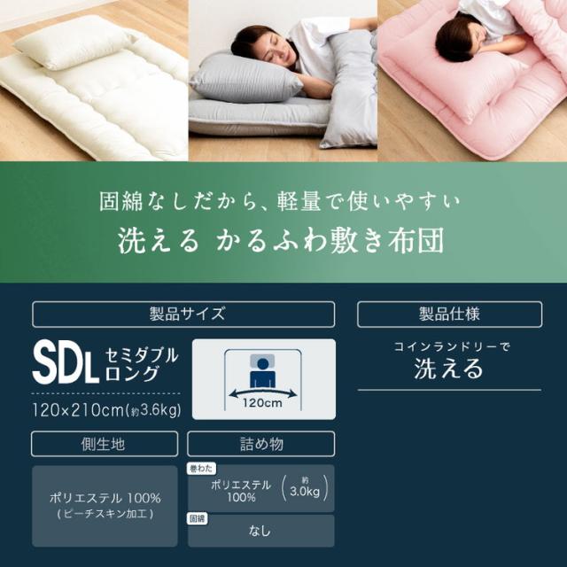 かるふわ 洗える 敷布団 セミダブルロング 日本製 合繊 敷き布団(固綿無し) セミダブル ロング 国産 日本製 敷き布団 洗える 丸洗い可 工場直送(代引不可)【送料無料】