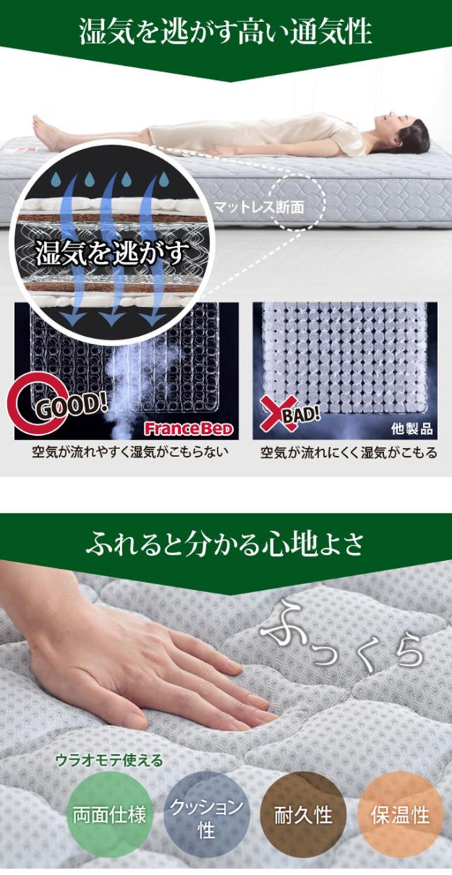 フランスベッド ツインサポートスプリングマットレス セミダブル 高密度連続スプリングマットレス 防ダニ 抗菌 防臭 寝具 日本製 国産 マットレスのみ ツインサポート(代引不可)【送料無料】