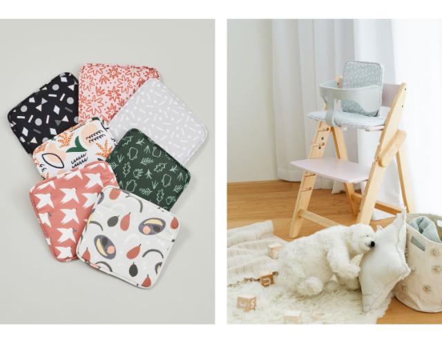 バックレスト用クッションは固定用のストラップ付き。シート用クッションはスターター・セットを卒業した後(3歳以降)も継続してお使いいただけるロングユースデザインです。