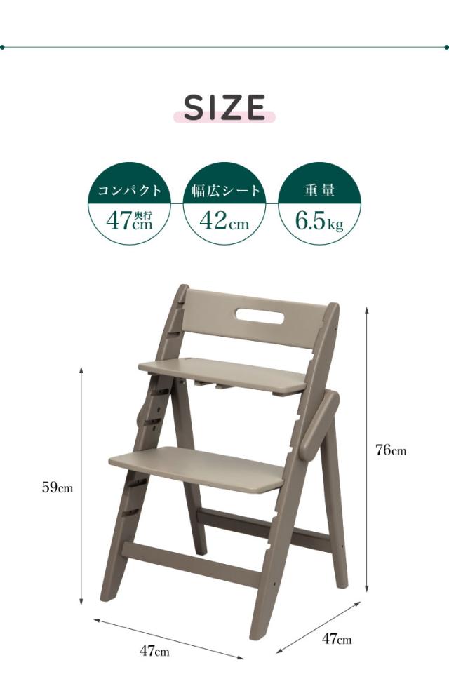 座面高:45cm~59cm(上から5番目~3番目の溝)