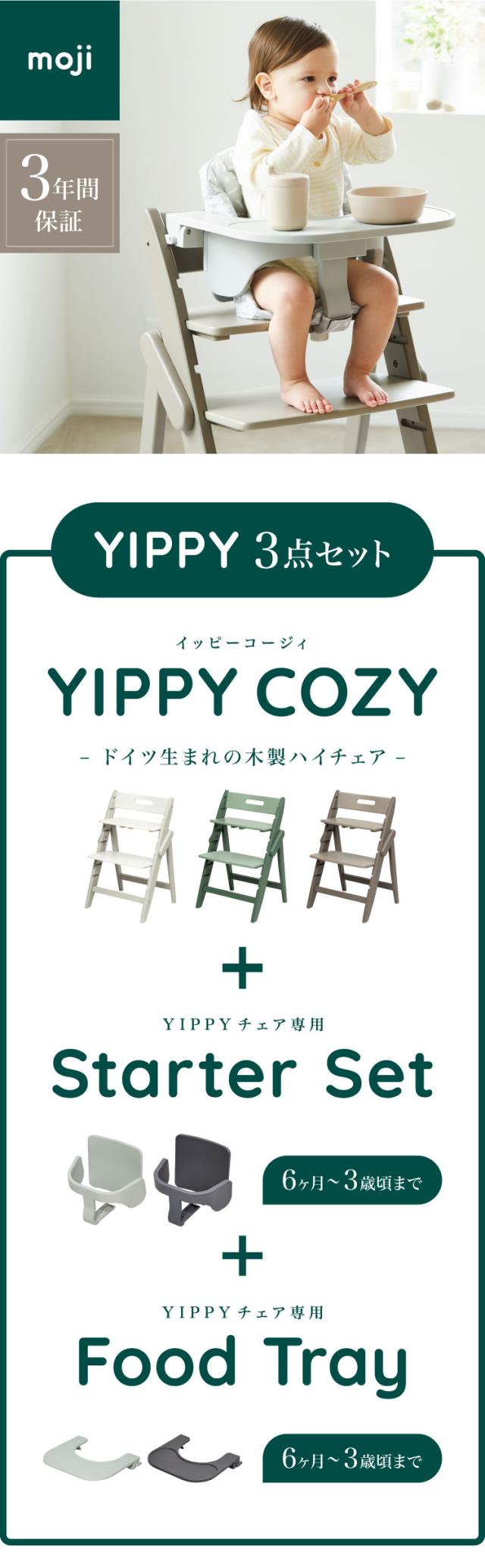 3点セット販売 moji モジ ベビーチェア イッピー コージィR スターターセット フードトレイ 3点セット YIPPY COZY R コージー ラバー材 折りたたみ ハイチェア キッズチェア イス 3年保証(代引不可)【送料無料】