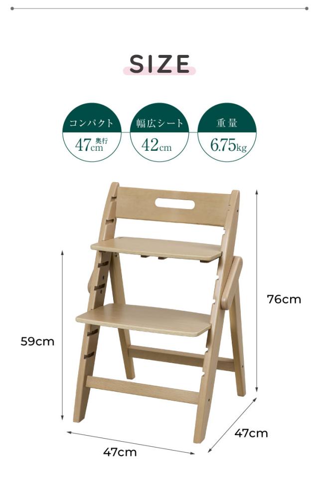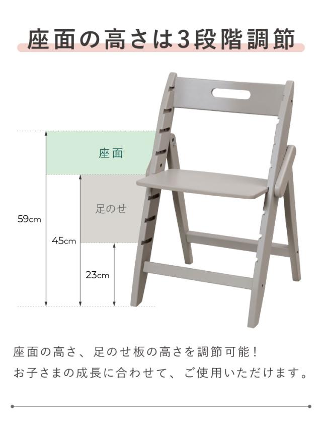 ・座面の高さ調節:45cm(上から5番目の溝)〜59cm(上から3番目の溝)