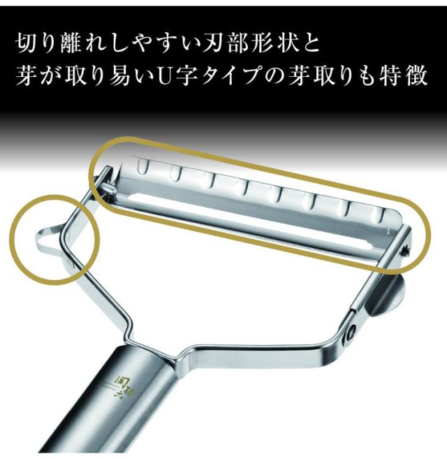 刃は掃除しやすい着脱式で、むいた皮が切り離れしやすい形状