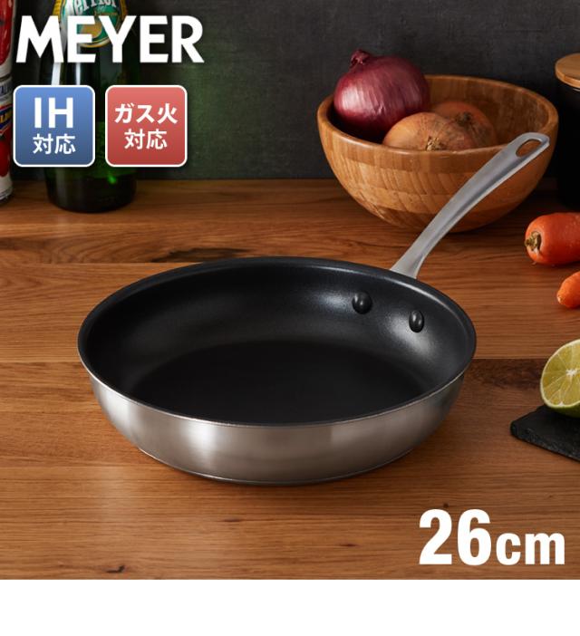 MEYER マイヤー フライパン 26cm 日本製ステンレス採用 ガス火 IH対応 オール熱源対応 PFOAフリー テフロン フッ素 焦げ付かない ステンレス シルバー シンプル おしゃれ【送料無料】