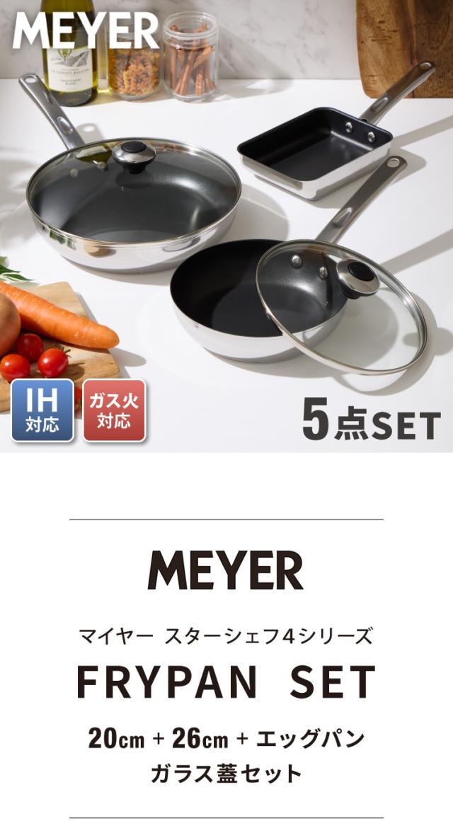 MEYER マイヤー フライパン ガラス蓋 5点セット 20cm 26cm エッグパン ステンレス ガス火 IH対応 PFOAフリー STAR CHEF 4 スターシェフ 新モデル シルバー フッ素 焦げ付かない シンプル おしゃれ(代引