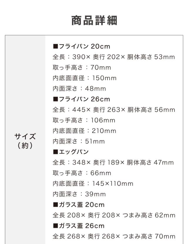 フライパン 20cm | フライパン 24cm | フライパン 26cm | フライパン 28cm |