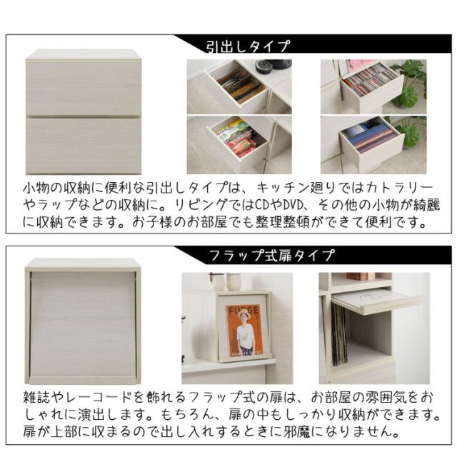 『使える』 をし っかりサポートした扉・引出し・オープン・レコ ードタイプとボックスデザインを損なわないキュ ーブ型に仕上げました。