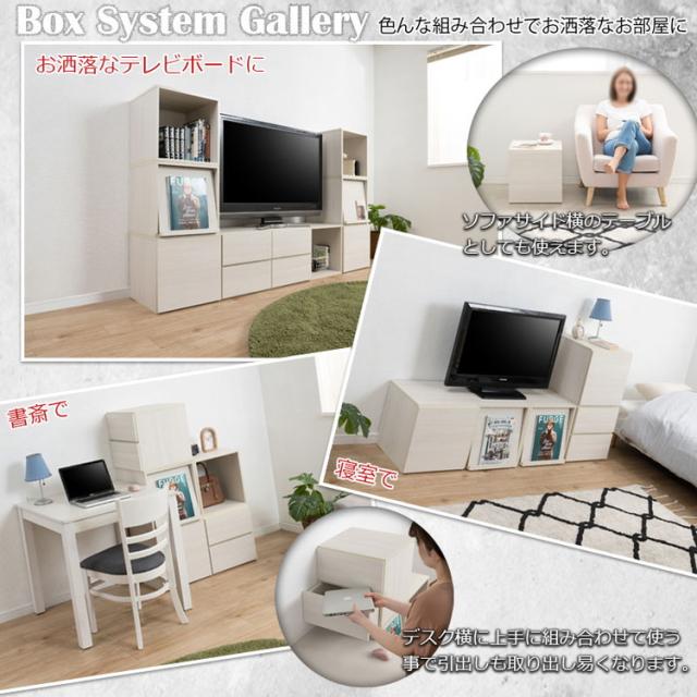 階段状にしたり、アイランドカウンターのような間仕切りにしたり、壁面に積み上げたり、ロボードとしてもどんな姿にもなる。『使える』 をし っかりサポートした扉・引出し・オープン・レコ ードタイプとボックスデザインを損なわないキュ ーブ型に仕上げました。