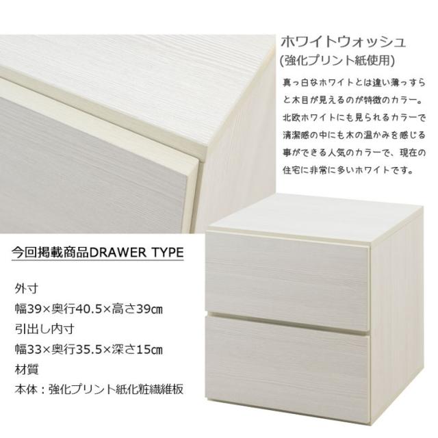 WW ダブルキューブボックス 引出タイプ 幅39 白 木製 ストッパー付 引き出 ローチェスト 2段 レンジ台 収納ボックス A4 DVD ラック 台 収納ラック セラミック クローゼット上 キッチン(代引不可)【送料無料】