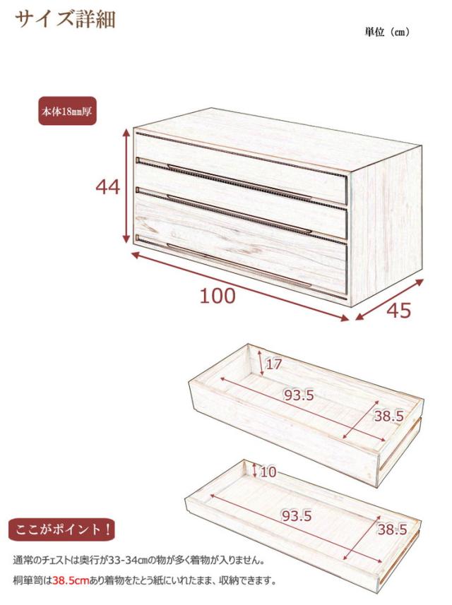 ■商品の仕様/本体:天然木桐材(水性塗装)、引出し底板・背板:天然木桐化粧板、背板内面:竹炭シート内蔵不織布
