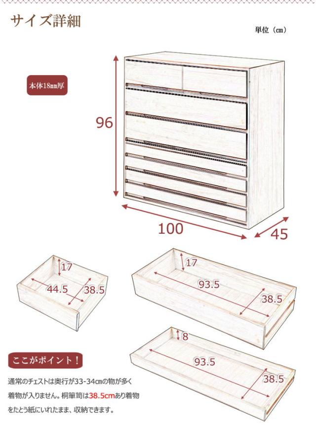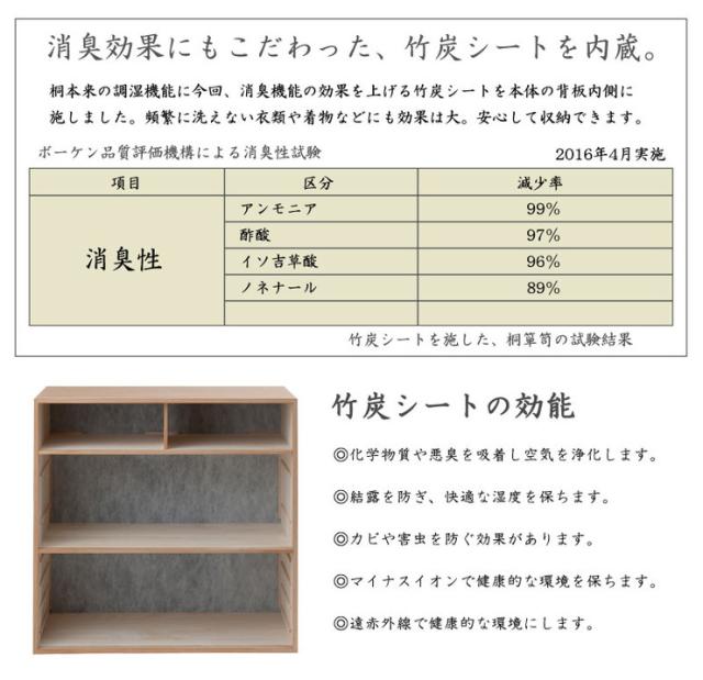 ■商品の仕様/本体:天然木桐材(水性塗装)、引出し底板・背板:天然木桐化粧板、背板内面:竹炭シート内蔵不織布