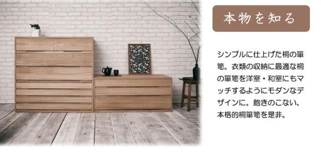 取っ手金物のないシンプルに仕上げたモダンな印象の桐箪笥。