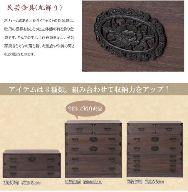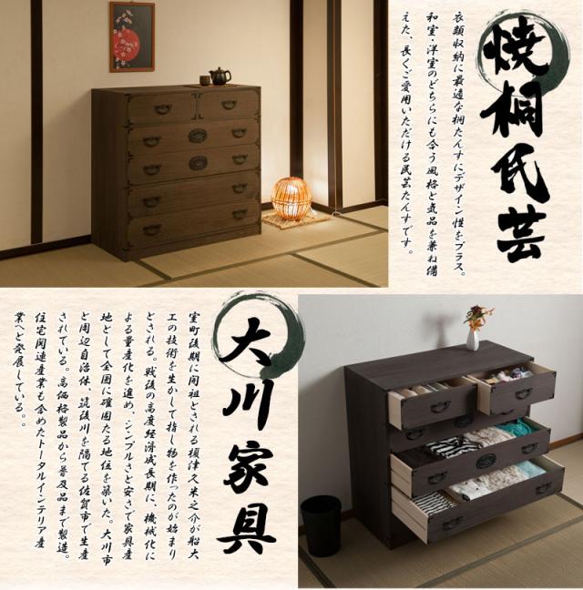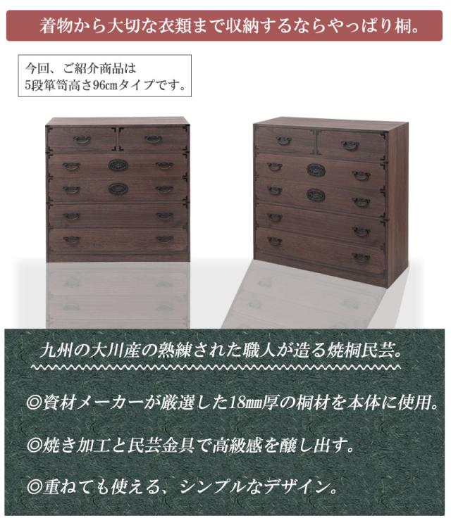 日本製 大川家具 民芸 焼桐 箪笥5段 五段 タンス 桐たんす 箪笥 収納 衣類収納 収納タンス 和風 和モダン おしゃれ 和室 国産(代引不可)