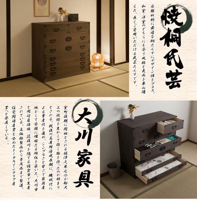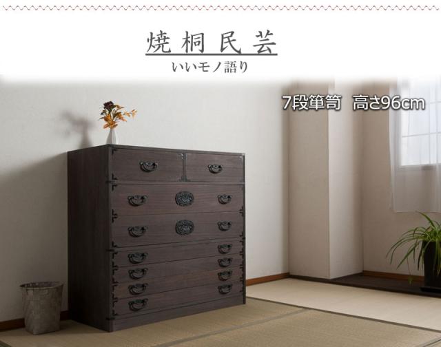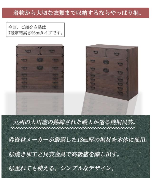 日本製 大川家具 民芸 焼桐 箪笥7段 七段 タンス 桐たんす 箪笥 収納 衣類収納 収納タンス 和風 和モダン おしゃれ 和室 国産(代引不可)