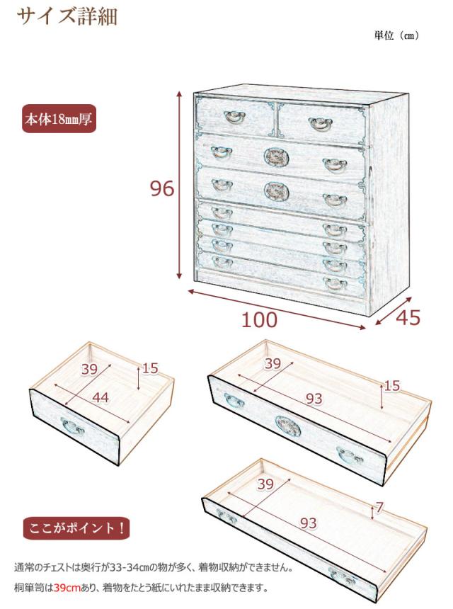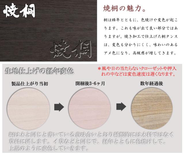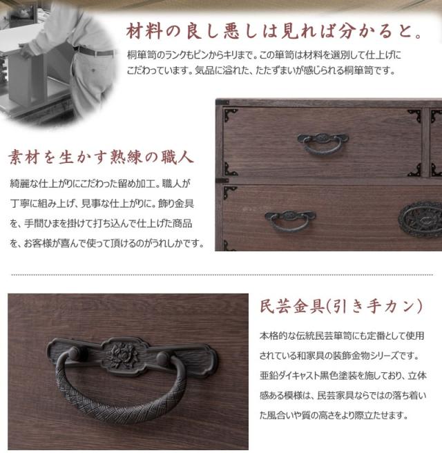 ■商品の仕様/本体:天然木桐材(焼き仕上げ)、引出し底板・背板:天然木桐化粧板、民芸金具:亜鉛ダイキャスト