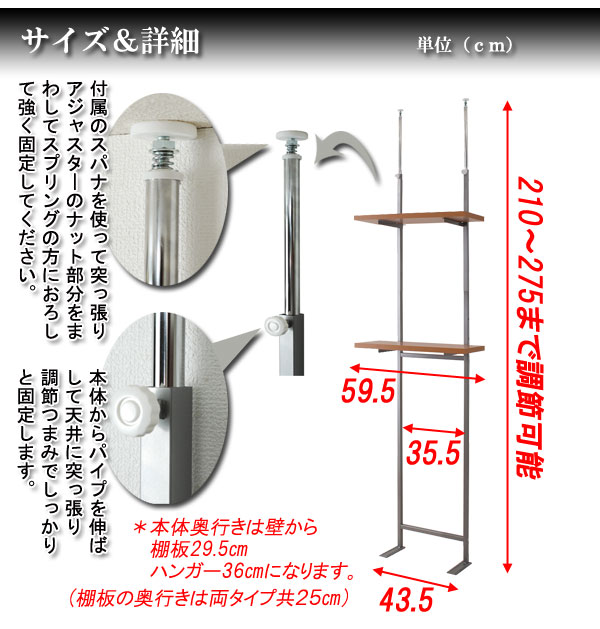 ■商品サイズ/本体:(約)幅59.5×奥行29×高さ210〜275cm、棚板:(約)幅59.5×奥行25cm
