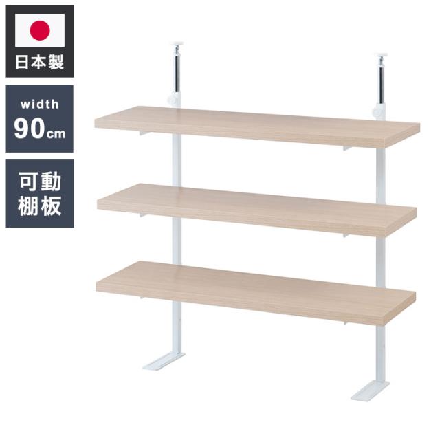 カウンター下突っ張りラック 無段階調整3枚棚オープンラック 本体 幅89.5cm マリンナチュラル 壁面ラック つっぱり 薄型 収納 ディスプレイラック 店舗 新生活 カフェ サロン 一人暮らし(代引不可)【送料無料】