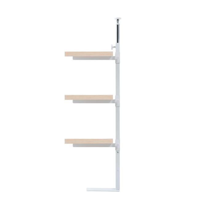 無段階に可変する棚板で、様々な物を、様々な用途で使う事ができる、万能型の突っ張り式のラックでお洒落なスペースに。棚板はつまみを緩めて移動が簡単にでき、無段階の高さ調節ができるので置くものに合わせてレイアウトができます。本体を2台並べて、別売り棚板を挟めば、用途がさらに広がります。置くものを変えても棚板を移動して模様替えが簡単にできるのが大変便利です。