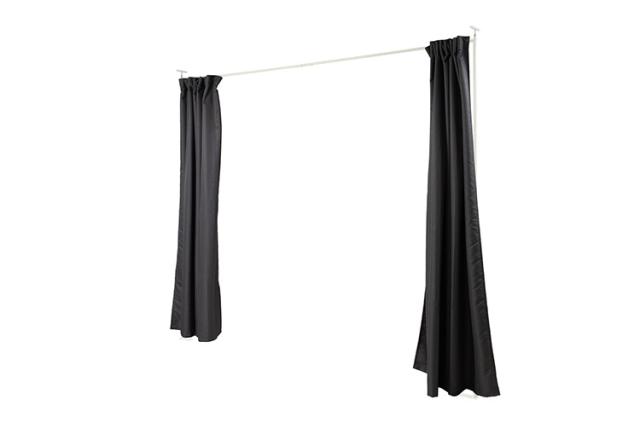 突っ張り式で簡易に間仕切れるカーテンタイプ。天井近くまで隠せるので完全個室感のある仕上がり。並べてクローゼット空間を造ったり、ブティックの試着室のような使い方もできます。カーテンは取り外し可能で手持ちのカーテンに付け替えも可能。邪魔にならない省スペース設計で使いまわしも簡単。