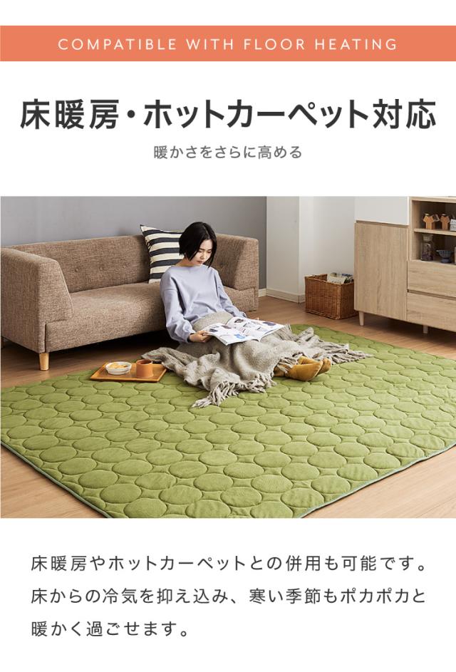 フローリングに合う丸いキルト採用でラグとしても楽しめます!