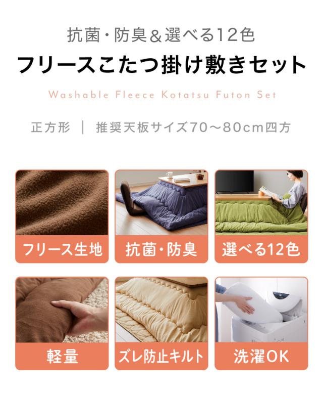 選べる12色! 洗える こたつ布団セット 正方形 フリース 掛敷セット 掛け布団 滑り止め付 敷布団 こたつ敷き布団 炬燵布団 抗菌防臭 ラグ マット カーペット 秋冬用 かわいい おしゃれ 北欧【送料無料】